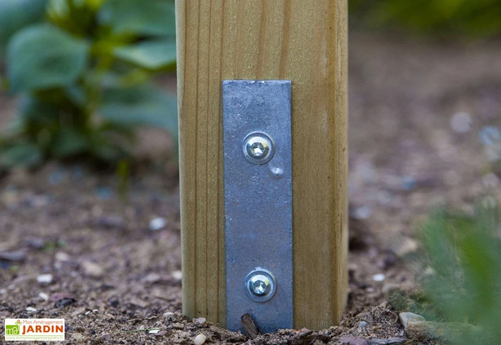 Cette aire de jeux d’extérieur est essentiellement conçue à partir de bois de pin sylvestre, à l’exception du toboggan de 2,20 m de long et des sièges des balançoires, en plastique. Ce bois est traité par autoclave classe 3, ce qui lui confère une belle protection contre l’humidité, les insectes et les moisissures susceptibles de le détériorer. Il est également certifié FSC, et provient donc de forêts gérées de manière écologique.