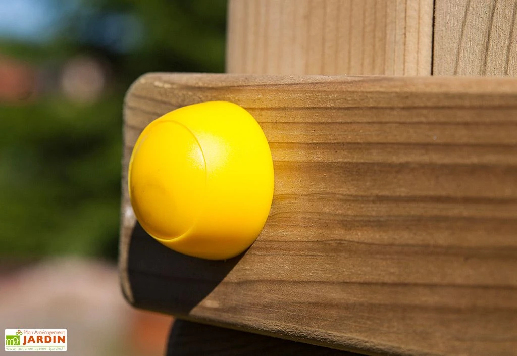 Cette aire de jeux en bois est livrée en kit. Vous devrez donc procéder vous-même à son montage. Les pièces en bois et tous les éléments nécessaires à leur assemblage sont inclus (ensemble d’outils, visserie en inox et kit d’ancrage).