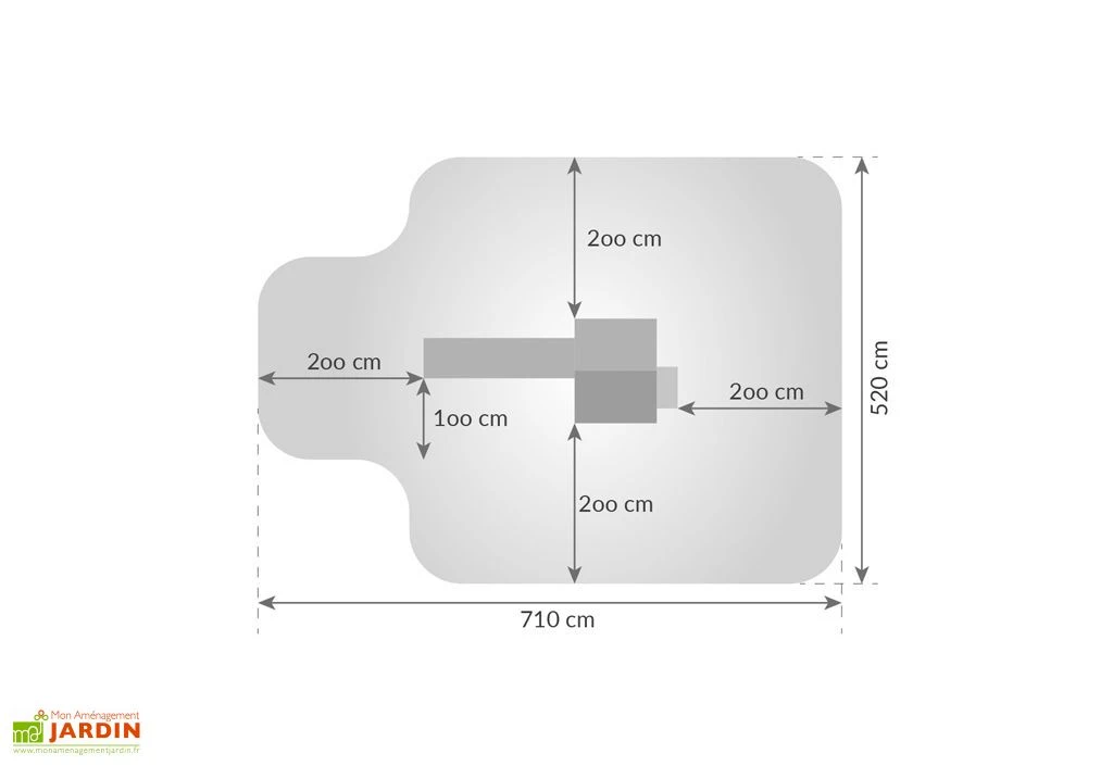 L’aire de jeux mesure 1,21 m de longueur, 3,10 m de largeur et 2,90 m de hauteur. La plateforme de 100 x 100 cm se situe à 117 cm du sol. Elle est livrée en kit à monter soi-même. Elle se monte en seulement une demi-journée pour une personne seule grâce à :