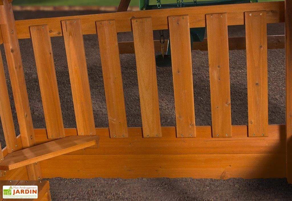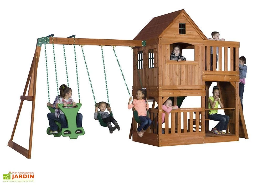 L’aire de jeux Hill Crest de Backyard Discovery est en cèdre tropical, idéal pour les enfants puisque c’est un bois naturellement imputrescible, qui ne craint pas les attaques d’insectes et qui ne demande aucun traitement chimique.