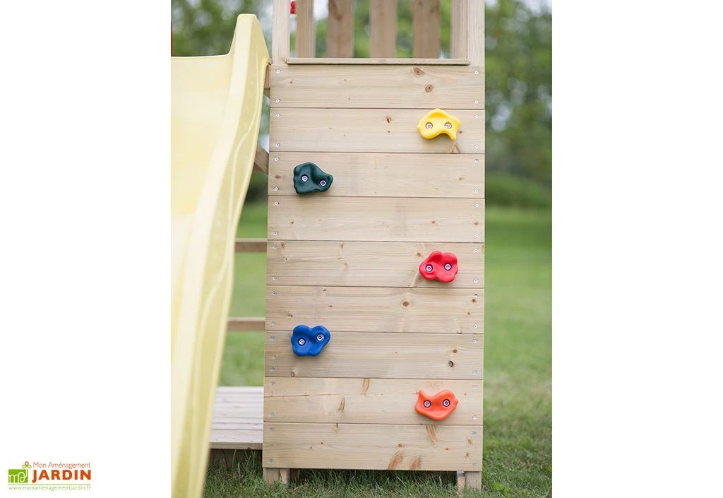 Le bois nécessite un traitement fongicide et insecticide pour résister aux agressions extérieures comme les insectes, la moisissure et autres champignons qui pourraient le détériorer. Le bois utilisé est certifié FSC, ce qui signifie qu’il est issu d’exploitations forestières gérées de manière écoresponsable ! Notez enfin que cette aire jeux étant livrée en kit, elle devra être montée par vos soins à l’aide de la notice détaillée qui vous sera fournie.