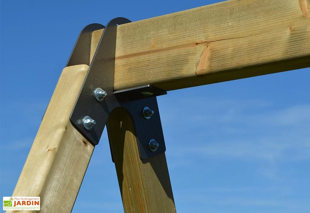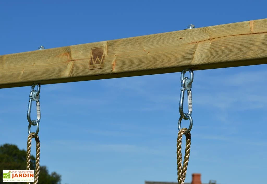 Essentiellement fabriquée en bois, vous pourrez appliquer à cette station de jeux un traitement fongicide et insecticide pour le rendre résistant à l’humidité et aux insectes généralement responsables de la dégradation du bois. Le bois utilisé pour sa conception est certifié FSC, ce qui indique qu’il provient de forêts gérées dans le respect de l’environnement.