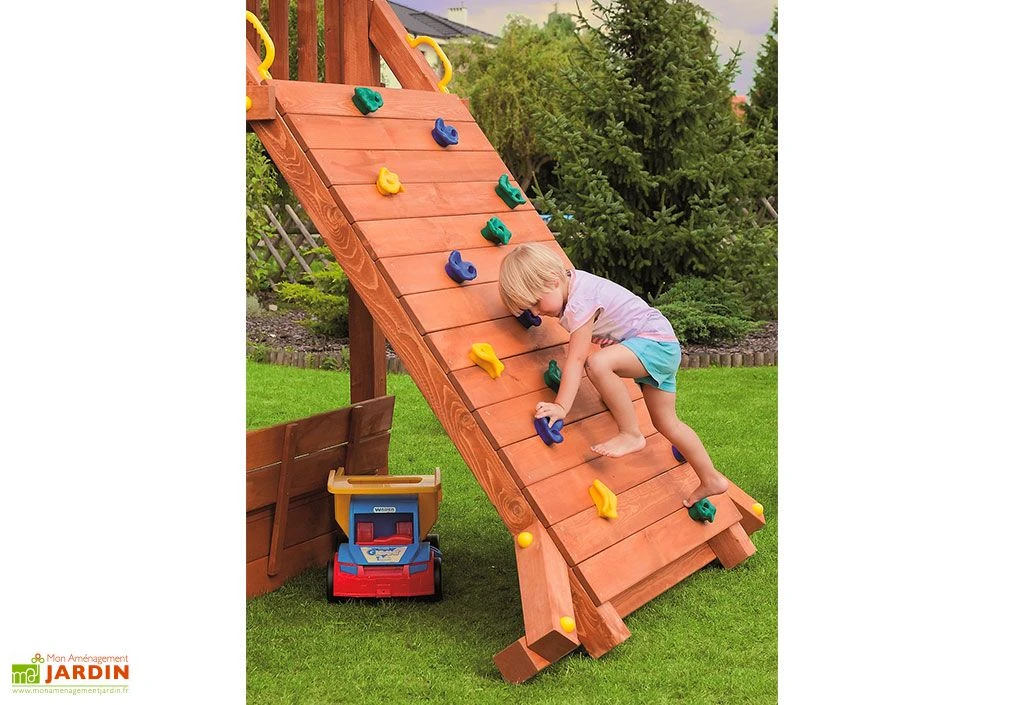 Cette aire de jeux en bois est destinée aux enfants à partir de 3 ans. Elle est d’ailleurs conforme à la norme EN 71. Pour des raisons de sécurité, il est recommandé de prévoir un périmètre de 2 m tout autour de l’aire. Pensez-y au moment de passer à son montage. Cette aire de jeux pour enfants est livrée accompagnée de tous les éléments nécessaires à son installation (ensemble d’outils, ancrage, visserie en inox et crochets pour balançoire).