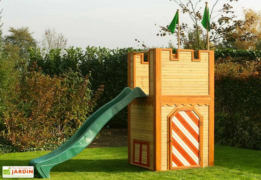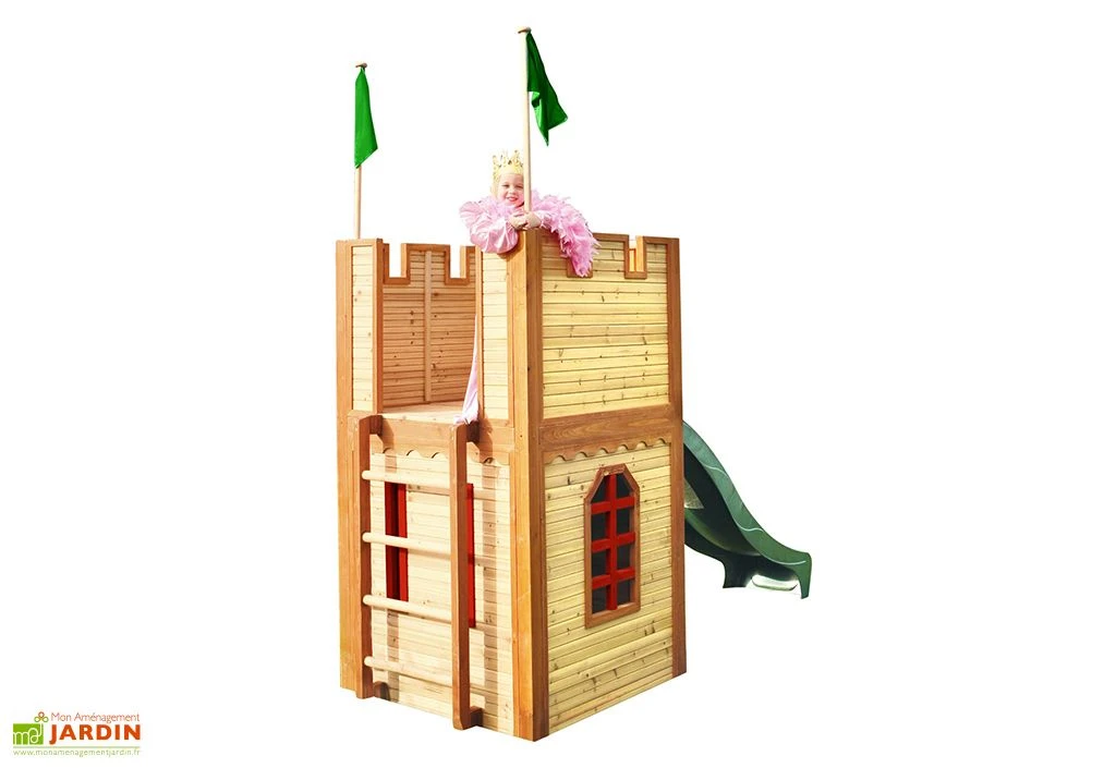 La cabane pour enfant Arthur de chez Axi est un espace de jeu idéal pour l’épanouissement de votre enfant. Cette maisonnette, qui prend la forme d’une tour de château fort, a été pensée pour les enfants âgés d’au moins 3 ans. Elle se compose d’une tour avec plateforme et d’un toboggan en plastique d’une longueur de glisse de 2,20 m, le tout étant conforme à la norme EN71.