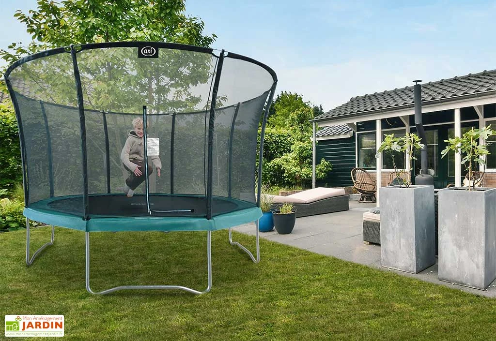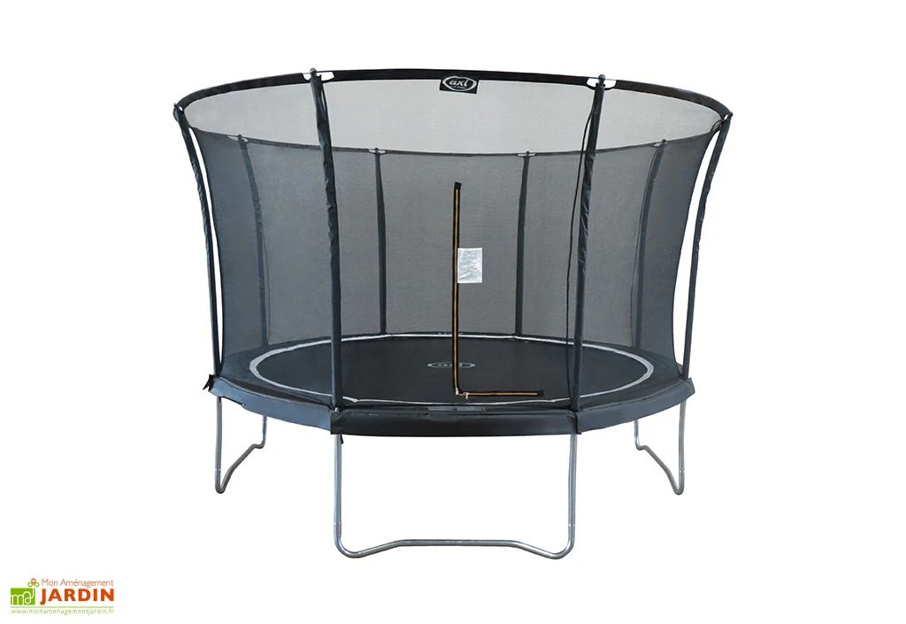 Ce trampoline est un grand trampoline sur pieds doté d’un filet de sécurité pour assurer une expérience de saut en toute sécurité. Il est fabriqué avec des matériaux de haute qualité, tels que de l’acier galvanisé, pour garantir sa durabilité et sa résistance aux intempéries. Avec ses pieds surélevés et l’échelle disponible dans l’onglet « accessoires », il est facilement accessible pour les enfants ainsi que pour les adultes.