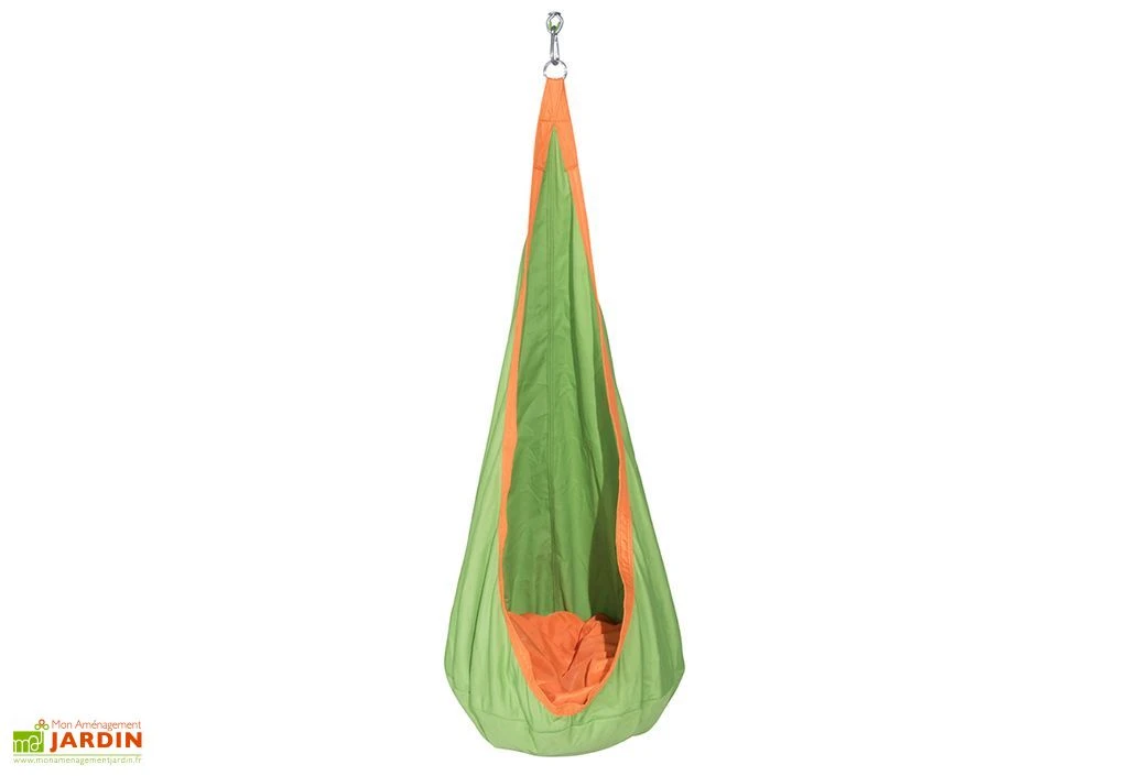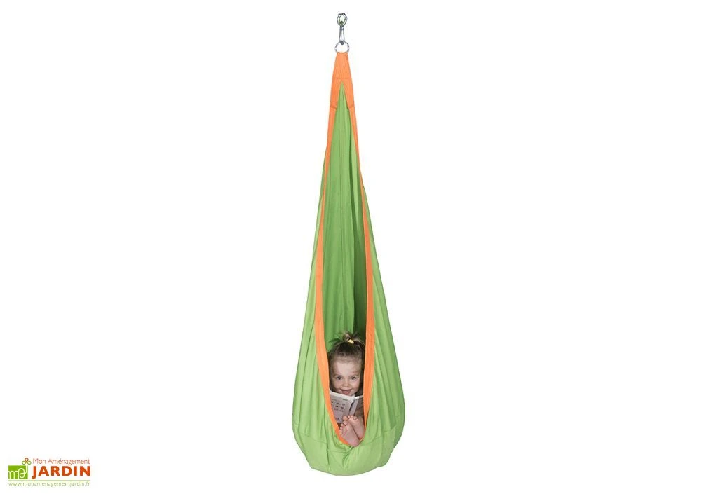 Cette balançoire hamac en toile suspendue est pensée pour les enfants de 3 à 12 ans. Ce hamac se suspend tel un cocon et peut supporter jusqu’à 50 kg. Conçue pour être adaptable à tout type de portique, cette balançoire hamac offre à votre enfant un espace apaisant, parfait pour les rêveurs. Notez que lors de son installation, le dessous de l’assise devra se trouver à plus de 35 cm du sol. Sa toile extérieure en Tergal pur protège le cocon contre les déchirures et peut être lavée en machine.