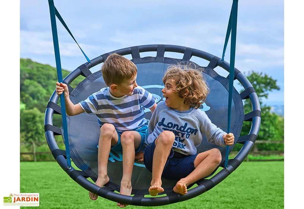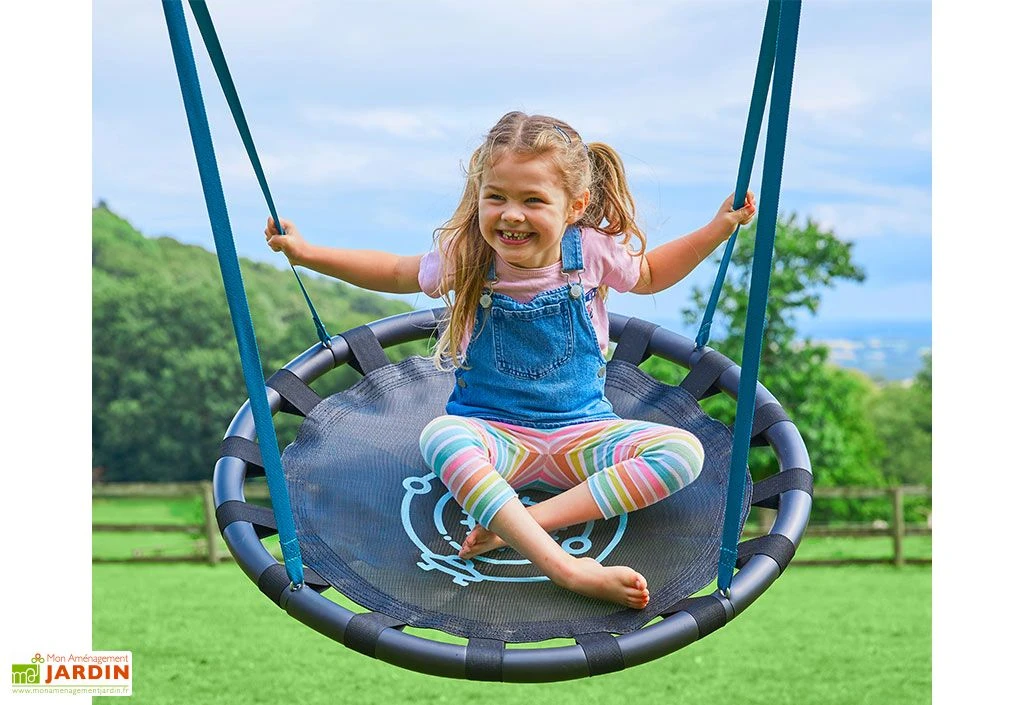 Ce siège pour balançoire se décline sous deux dimensions : le premier mesure 85 cm de diamètre et le deuxième 120 cm. Ainsi le plus grand pourra accueillir deux enfants dès l’âge de 3 ans en position assise ou allongée.