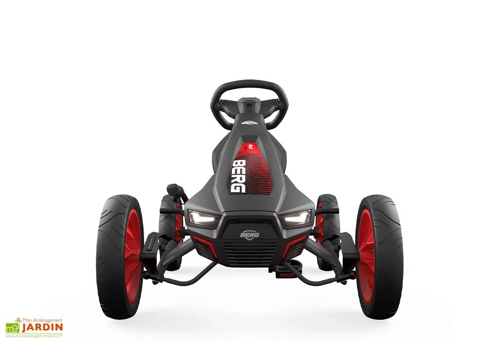 Le kart à pédales Berg dispose de 3 vitesses facilement réglables à l’aide d’une poignée. Le système de pédalage BFR permet un passage facile de la marche avant à la marche arrière, tandis que le frein de stationnement assure un arrêt en toute sécurité. Le kart à pédales pour enfants est équipé de feux LED et de clignotants, offrant une meilleure visibilité et une sécurité accrue lors de la conduite par temps sombre ou mauvais.