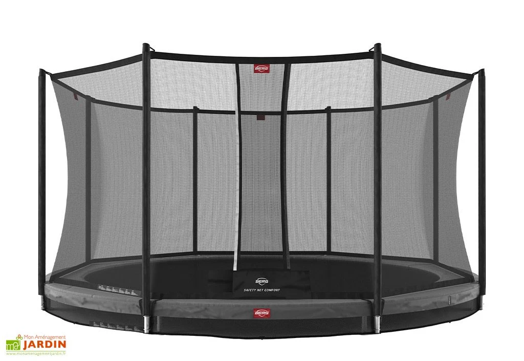 Le trampoline enterré de la marque Berg possède une structure en acier galvanisé de 430 cm de diamètre. Insensible à la rouille, même exposée aux intempéries, cette solide structure est bordée de rembourrages en mousse de 2 cm d’épaisseur. Un filet de protection est également inclus, pour plus de sécurité. Notez que ce trampoline est destiné aux enfants âgés d’au moins 6 ans.