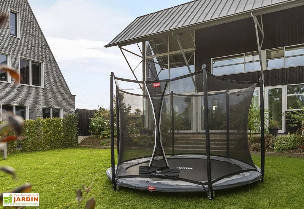 Idéal comme jeu extérieur, ce trampoline enterré de la gamme Favorit de chez Berg convient principalement aux jeunes enfants. Il permettra à vos enfants de s’amuser durant de nombreuses heures en toute sécurité lors des journées ensoleillées. Ce type de trampoline est beaucoup plus sûr que les modèles sur pieds, puisqu’il est situé au niveau du sol de votre jardin, et pour encore plus de sécurité, il est entouré d’un filet de protection.