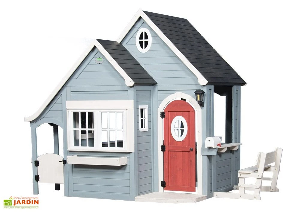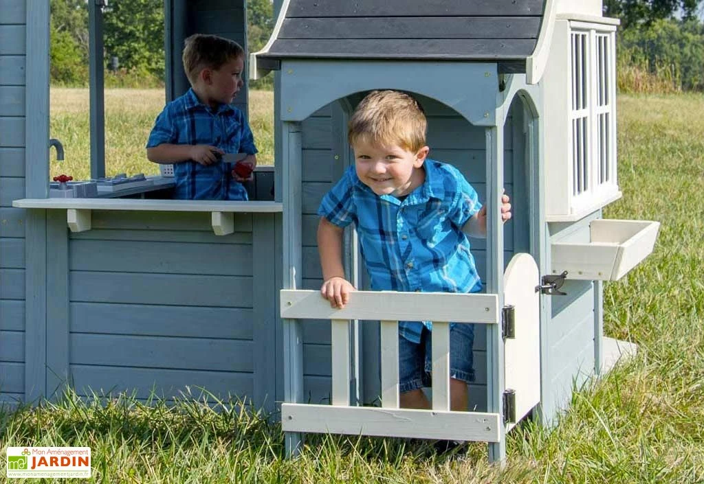 La maisonnette en bois est livrée en kit, facile à monter grâce à une notice de montage détaillée et à des panneaux déjà percés et pré-teints. Le temps est estimé à 3h à deux. Vous pouvez également appliquer une couche de vernis aqueux pour plus de protection. La garantie est de 2 ans.
