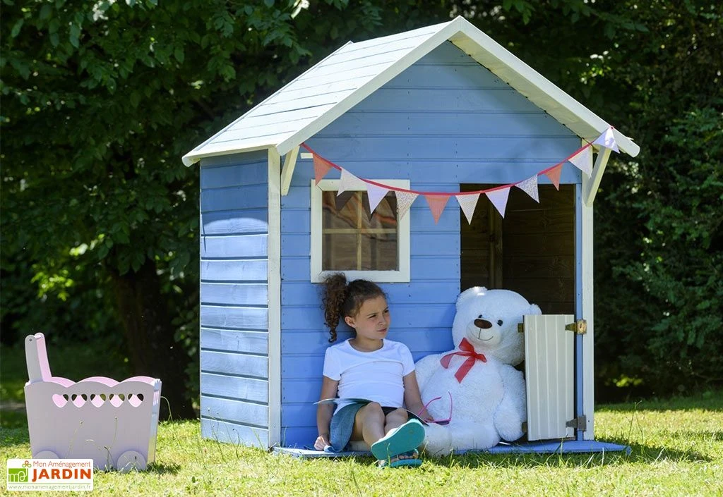 La maisonnette pour enfant Jane de chez Trigano est conçue en bois traité autoclave de classe 3. Ce traitement lui permet de résister à la moisissure et aux attaques d’insectes sans demander d’entretien particulier. Le bois étant brut, vous pourrez le peindre et personnaliser la cabane selon vos goûts et ceux de vos enfants. Le tout mesure 171,2 cm de long pour 126,4 cm de large et 152,4 cm de haut. Cette cabane offre une surface intérieure de 1,35 m² et dispose d’une petite terrasse de 59,8 cm d’avancée. Elle est pensée pour accueillir simultanément trois enfants âgés d’au moins 3 ans. Notez que le plancher est inclus.