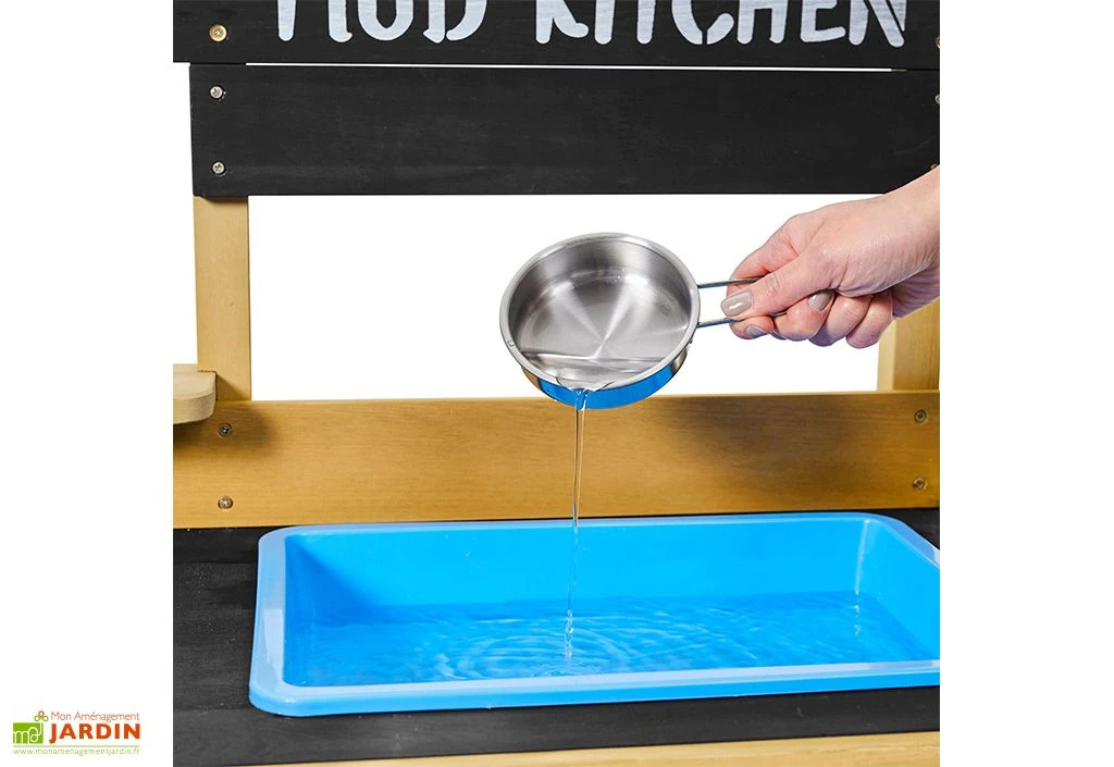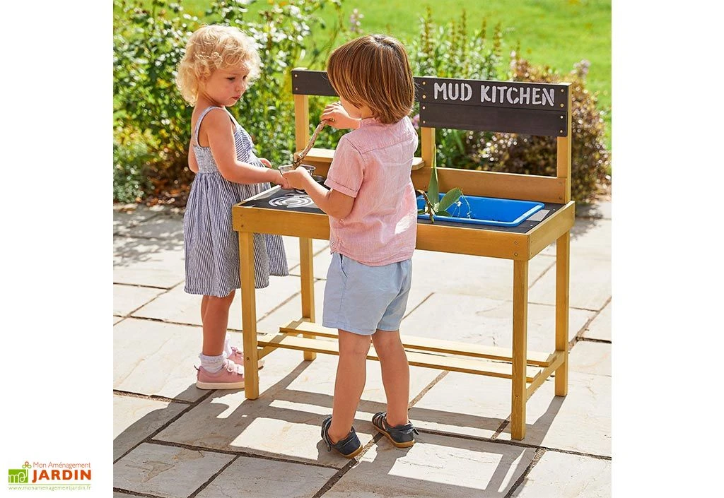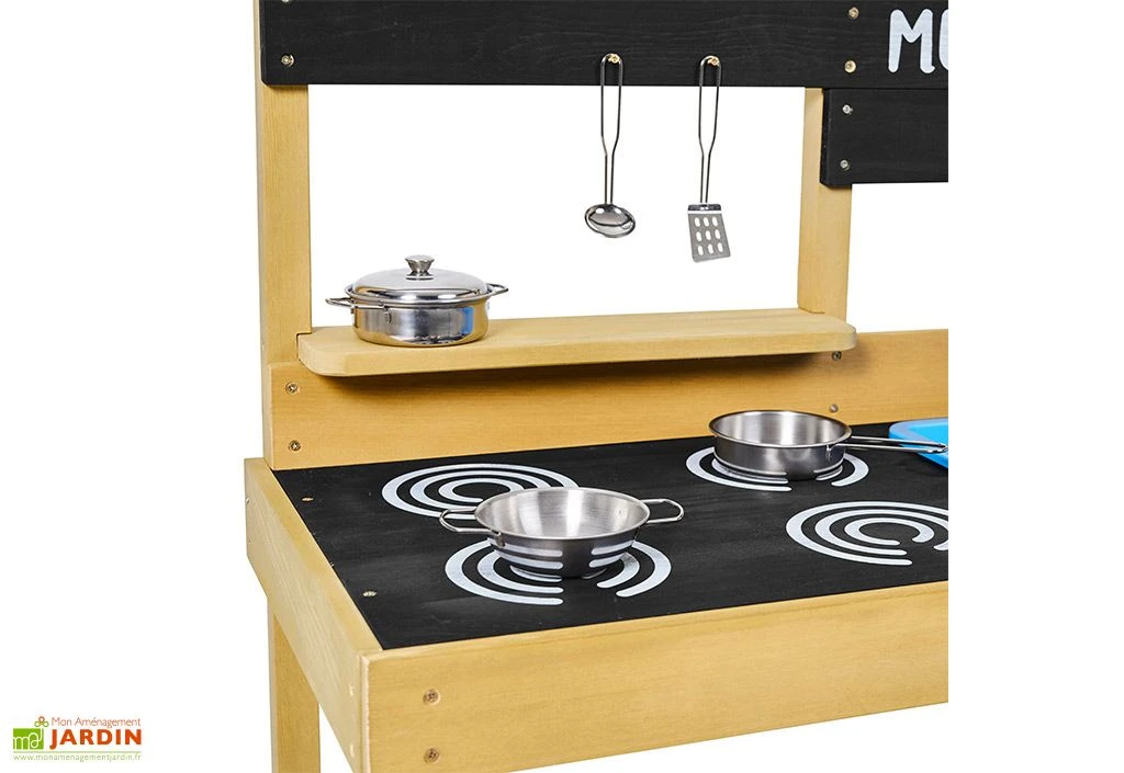 Ce jeu d’extérieur pour enfants mesure 85 cm de longueur sur 39 cm de largeur pour 88 cm de hauteur. Il est fabriqué à partir de bois certifié FSC, ce sigle signifie que le bois provient de forêts gérées dans le respect de l’environnement. La cuisine extérieure en bois est livrée en kit, à monter soi-même.