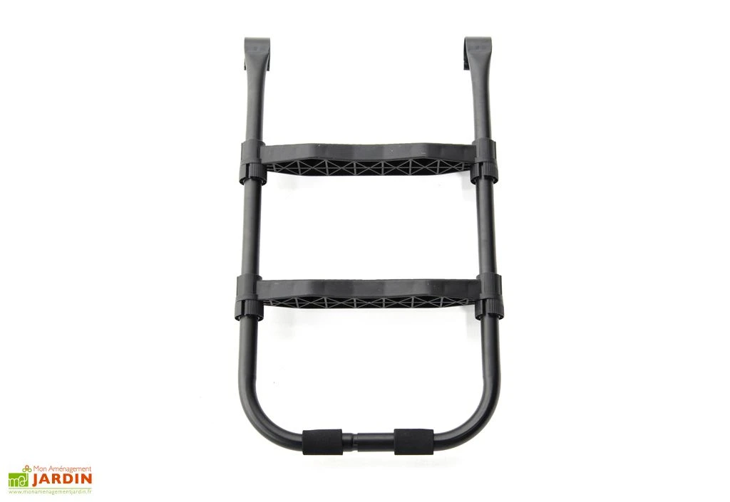 Conçue pour les trampolines extérieurs de moins de 2,50 m de diamètre ou de 60 à 69 cm de haut, cette échelle France Trampoline conviendra par exemple pour le modèle Start’Up 250 de la marque. Elle est fabriquée en acier thermolaqué, ce qui lui permet de passer toute l’année dehors sans craindre la corrosion, et dispose de deux larges marches antidérapantes. Votre enfant pourra ainsi monter facilement et en toute sécurité sur le trampoline.