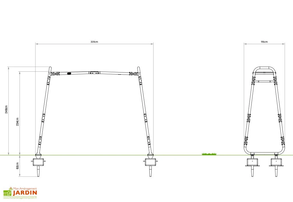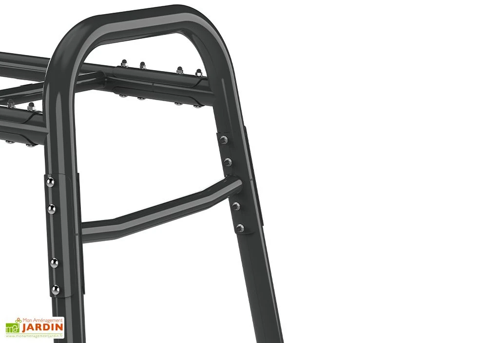 Le portique en acier galvanisé bénéficie d’une garantie de 10 ans.