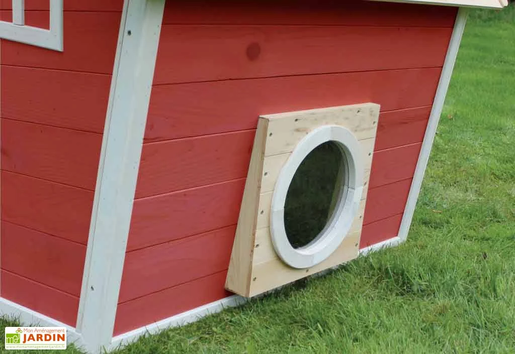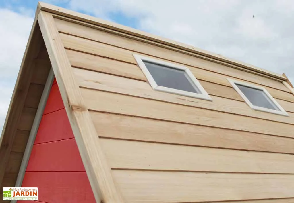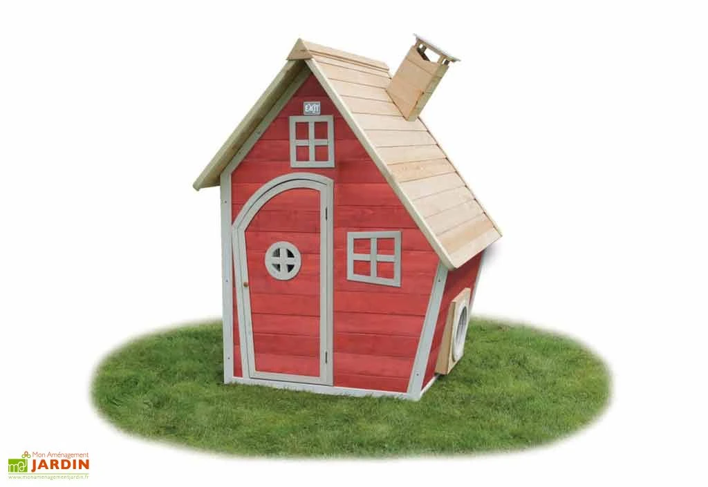 Votre maison en bois Fantasia chez Exit Toys séduit les enfants et les parents par sa forme hors du commun et ses couleurs attrayantes. Peinte en rouge, la cabane mesure 94,5 x 102 x 158 cm. Elle est équipée d’une porte et de deux fenêtres fixes (non ouvrables) en façade. Elle dispose d’une fenêtre pouvant s’ouvrir sur le côté, et d’un hublot sur le côté opposé. La maisonnette en bois Fantasia est garantie 2 ans.