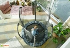 Ce trampoline de la gamme Allure Classic du fournisseur Exit Toys dispose d’un tapis de saut rectangulaire en polypropylène de 195 x 376 cm. Cette forme prend moins de place dans votre jardin et elle est plus adaptée aux personnes expérimentées, mais le trampoline convient parfaitement à des enfants âgés de 3 ans et plus. La surface est cerclée par 80 ressorts doubles coniques de 17,7 cm de long qui assurent d’excellents rebonds.