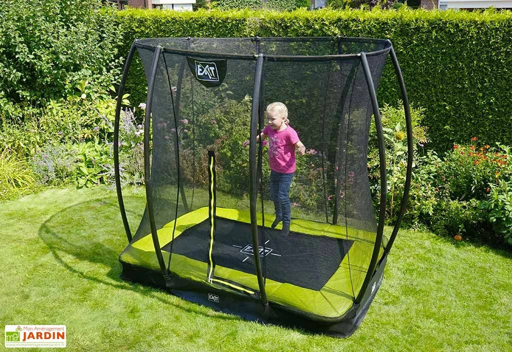 Le trampoline pour enfant Silhouette Inground de chez Exit Toys est disponible dans trois coloris au choix : noir, rose ou citron vert. Il s’agit d’un modèle à enterrer affichant des dimensions de 153 x 214 cm, pour une surface de saut de 105 x 166 cm. Ce tapis de saut, conçu en polypropylène, est pensé pour supporter un poids maximum de 100 kg.