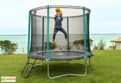 Ce kit d’ancrage pour trampoline de la marque France Trampoline vous permettra de stabiliser et de sécuriser votre installation. Compatible avec tous les modèles de trampolines extérieurs, ce kit se chargera de fixer votre trampoline au sol, lui évitant ainsi de s’envoler en cas de vents violents (à relativiser selon la taille de votre trampoline, plus ce dernier est grand, plus la prise au vent est importante). Il est composé de quatre tiges métalliques à planter dans le sol et d’autant de sangles à entourer autour des pieds du trampoline.