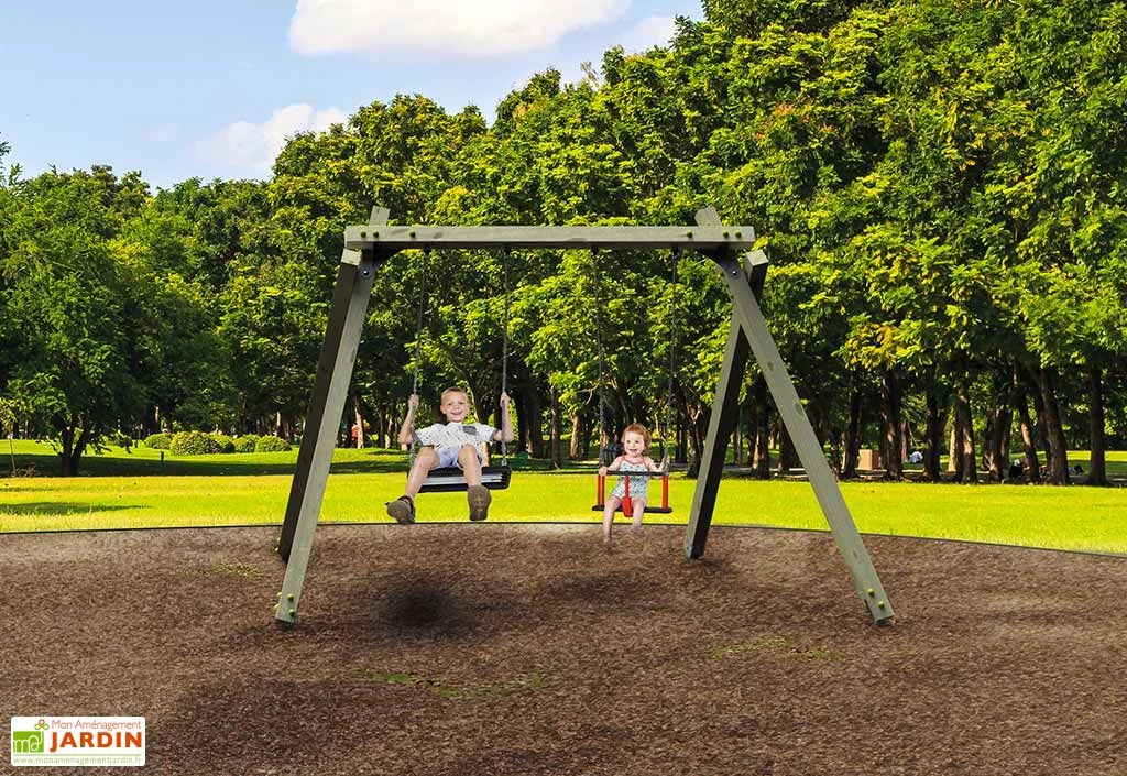 Le portique en bois Ridge de chez White Rhino pourra accueillir jusqu’à deux balançoires (à choisir dans l’onglet « Accessoires »). Conçu pour être utilisé en extérieur, il est fabriqué en bois traité par autoclave classe 4. Ainsi protégé, il ne craindra ni l’humidité, ni les insectes et autres champignons susceptibles de détériorer le bois.