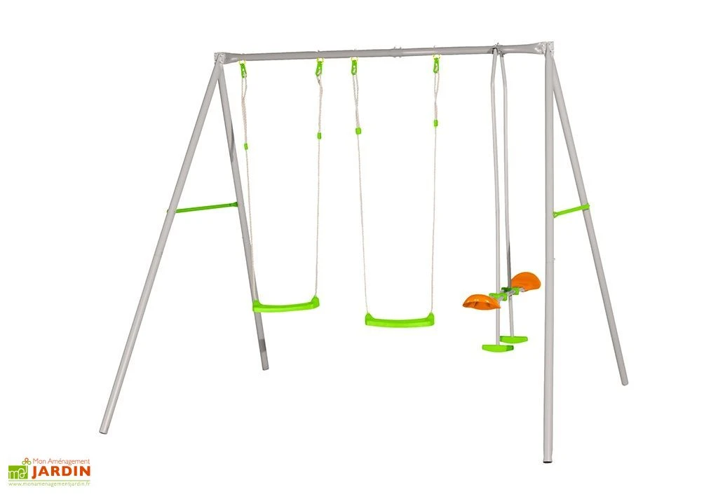 Le portique Louise de chez Trigano est destiné à des enfants à partir de 3 ans et jusqu’à 12 ans. Il est tout en métal et dispose de 3 agrès permettant de recevoir jusqu’à 4 enfants en même temps : 2 balançoires et 1 face-à-face.