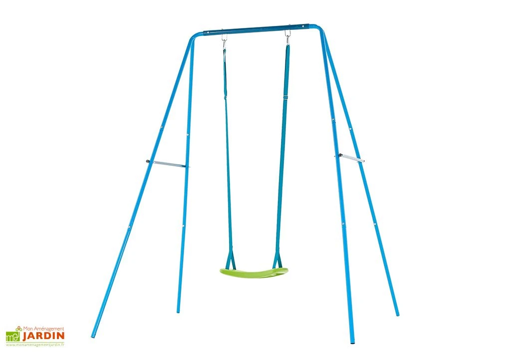 Cette balançoire de la marque TP Toys peut facilement évoluer en quelques secondes pour s’adapter à l’âge de vos enfants. Lorsque le portique est à faible hauteur, il convient à des enfants à partir de 6 mois et lorsqu’il est à pleine hauteur, celui-ci est destiné à des enfants âgés de 3 ans et plus. L’aire de jeux est fabriquée en acier galvanisé dans un coloris bleu. Elle convient uniquement pour un usage domestique.