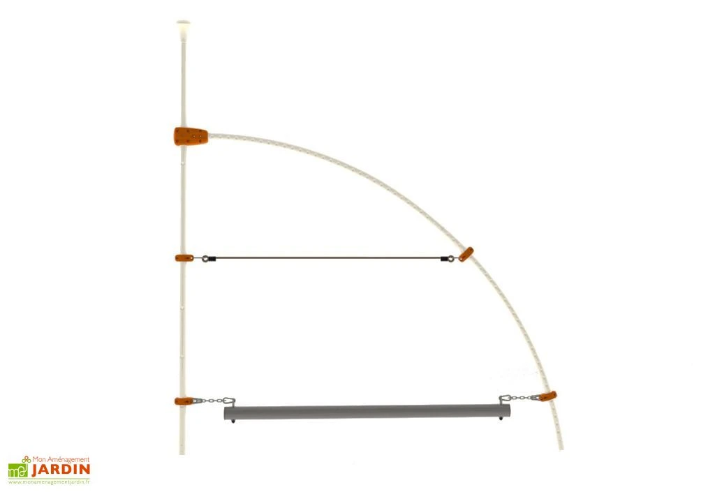 Le rondin d’équilibre de chez EVO est destiné à des enfants à partir de 4 ans. L’objectif est de développer l’adresse et l’agilité de l’enfant en le faisant passer d’un bout à l’autre du rondin. Il s’aide de la corde pour ne pas tomber tout au long du parcours. L’agrès se change en seulement 2 minutes grâce à un système intelligent breveté. De fabrication française l’agrès est résistant et permet de remplacer l’agrès de n’importe quelle aire de jeux EVO. Ainsi l’enfant découvre toujours de nouvelles attractions. Les agrès se changeant rapidement et facilement, il est aisé de passer de l’un à l’autre pour suivre les désirs et l’évolution de l’enfant. La garantie est de 2 ans.