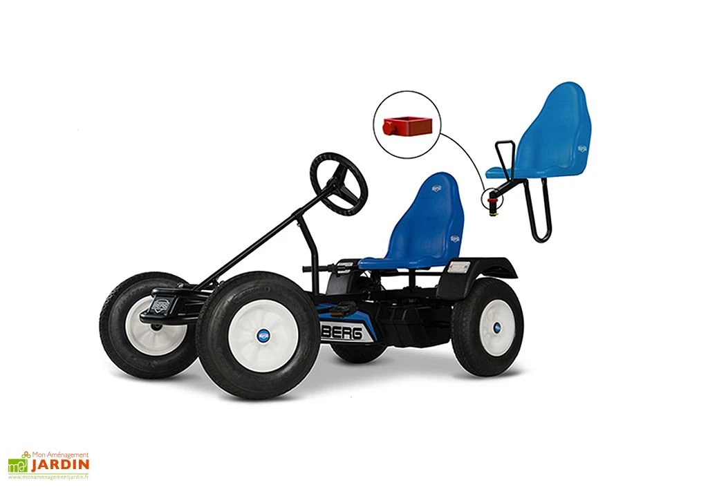 Le siège Duo Lux de chez Berg est spécialement conçu pour les karts à pédales de la marque. Pensé pour supporter un poids maximum de 30 kg, il permettra à votre enfant d’emmener un passager avec lui le temps d’une balade. Facile à installer, ce siège conviendra à de nombreux modèles, à l’exception de ceux dotés d’un arceau ou les modèles suivants :