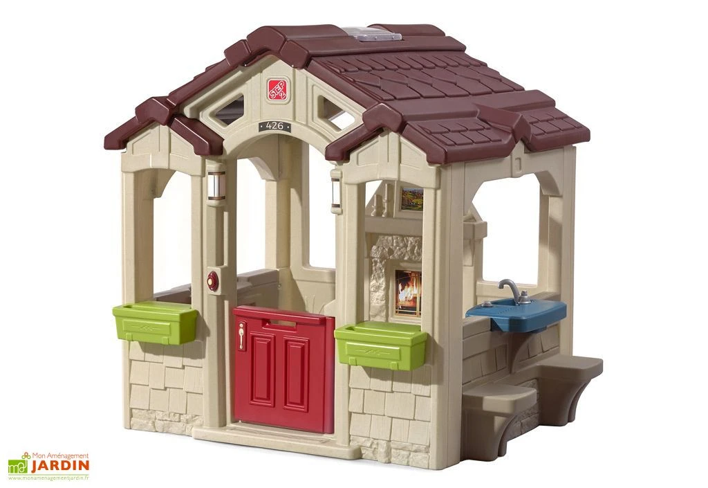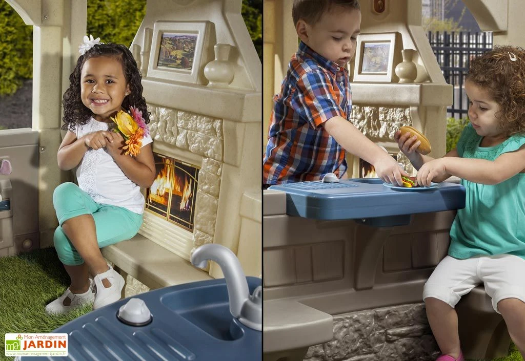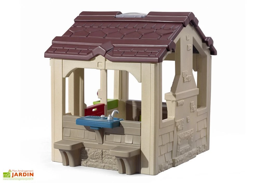 La petite maison de charme style cottage de chez Step2 propose de nombreuses fonctionnalités afin que vos enfants puissent s’amuser dans le jardin. La cabane mesure 149,2 x 127,3 x 147,3 cm (l,l,h). Elle est idéale pour les enfants à partir de 2 ans.