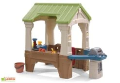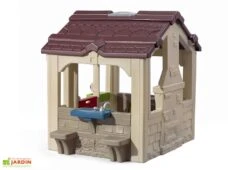 La cabane de chez Step 2 est en plastique rotomoulé, un plastique très résistant et aux formes arrondies, parfaitement adaptée aux enfants. La cabane est une véritable petite tonnelle pour enfant équipée d’une toile amovible pour en faire une structure complètement ouverte et pour faciliter le nettoyage de la toile.