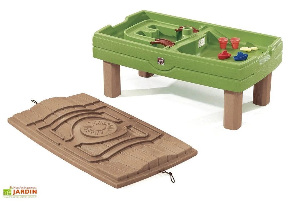 La table de jeu pour enfants Naturally Playful de chez Step 2 propose un centre de jeu sur table rectangulaire double fonction : sable et eau. La taille de la table 117 x 66 x 53 cm (l,l,h) est à parfaite hauteur pour que les enfants jouent et s’amusent sans se salir.