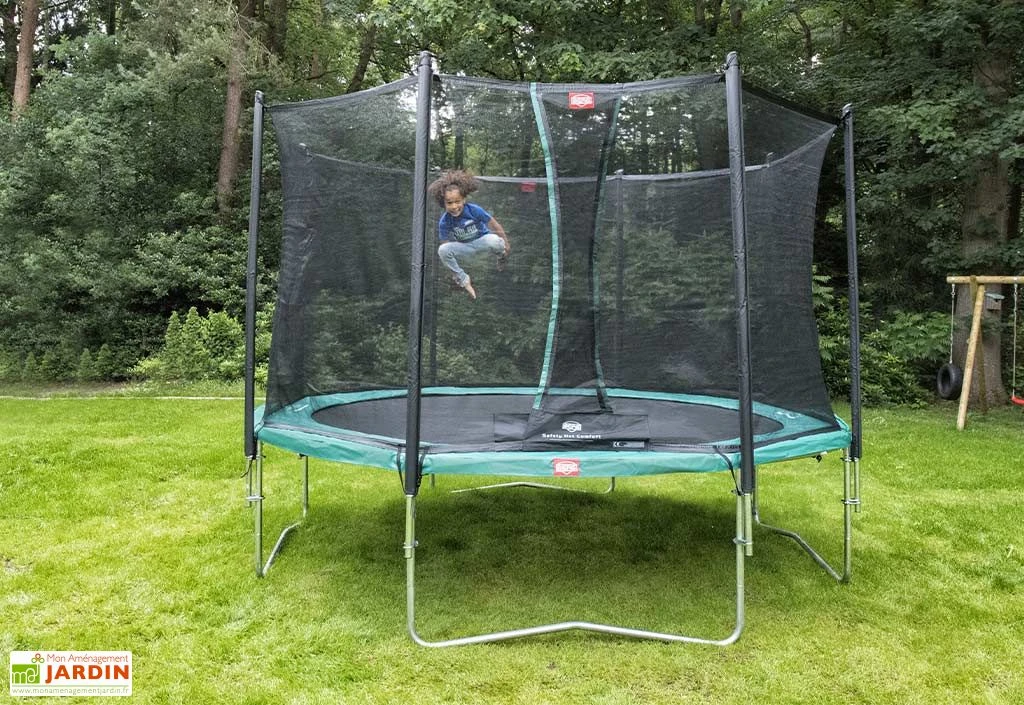 Le trampoline rond Favorit 430 de chez Berg est équipé d’un filet de sécurité afin de permettre à votre enfant de s’amuser en évitant tout risque de chute (convient pour les enfants à partir de 6 ans). Grâce à sa structure en acier galvanisé, ce trampoline sur pieds ne craint pas la corrosion, même exposé aux intempéries.