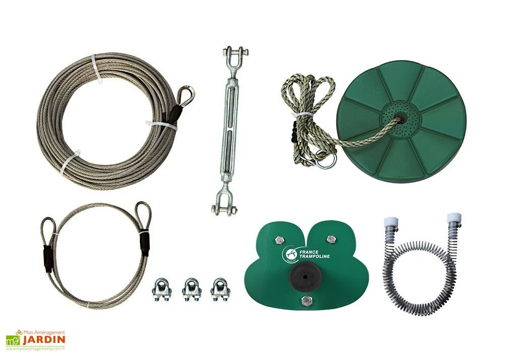 Vous avez toujours rêvé d’avoir une tyrolienne dans votre jardin ? Ce kit de la marque France Trampoline vous permettra d’installer votre propre tyrolienne en plein cœur de votre extérieur ! La tyrolienne Frog conviendra pour les enfants à partir de 3 ans (âge conseillé : à partir de 6 ans) mais enchantera également à coup sûr les adultes (poids maximum : 110 kg) !