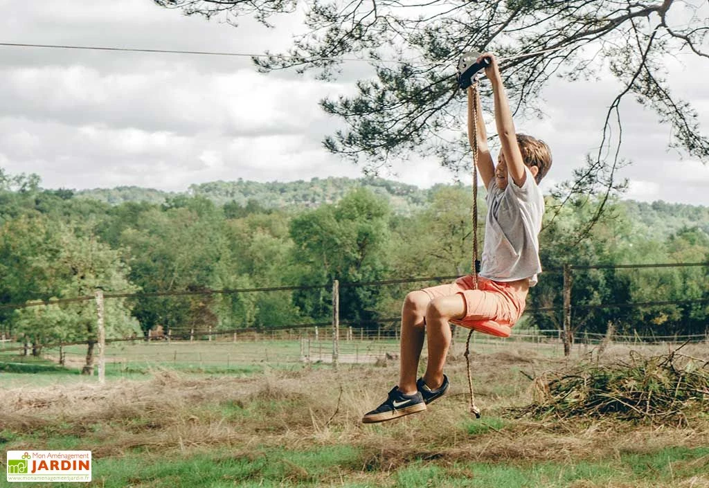 La tyrolienne Fury de chez France Trampoline est à installer dans un jardin, entre deux arbres en bonne santé. Elle permettra à petits et grands de profiter de belles sensations, en toute sécurité, et vous garantira des moments d’amusement en famille ! Notez que cette tyrolienne conviendra pour les enfants dès 3 ans (âge conseillé : 6 ans) et pour les adultes dans une limite de poids de 110 kg.