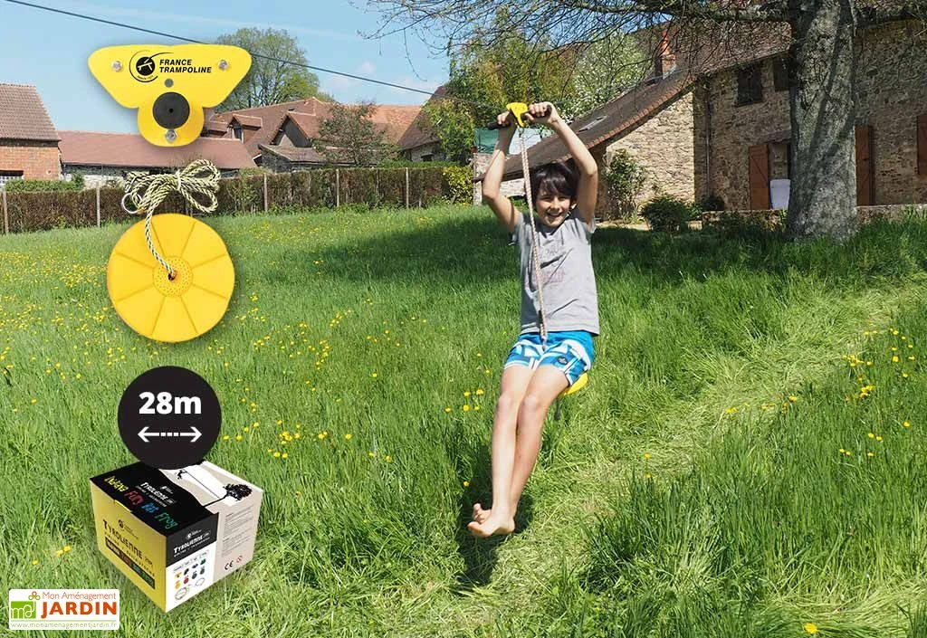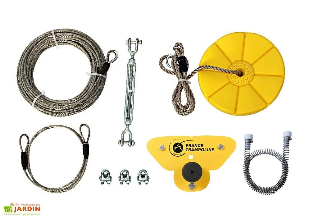 Ce kit France Trampoline vous permettra d’installer une tyrolienne directement dans votre jardin ! Idéale pour les enfants (dès 3 ans, âge minimum conseillé : 6 ans), cette tyrolienne de jardin conviendra également pour les adultes (poids maximum : 110 kg) et promet de nombreuses heures d’amusement en famille !